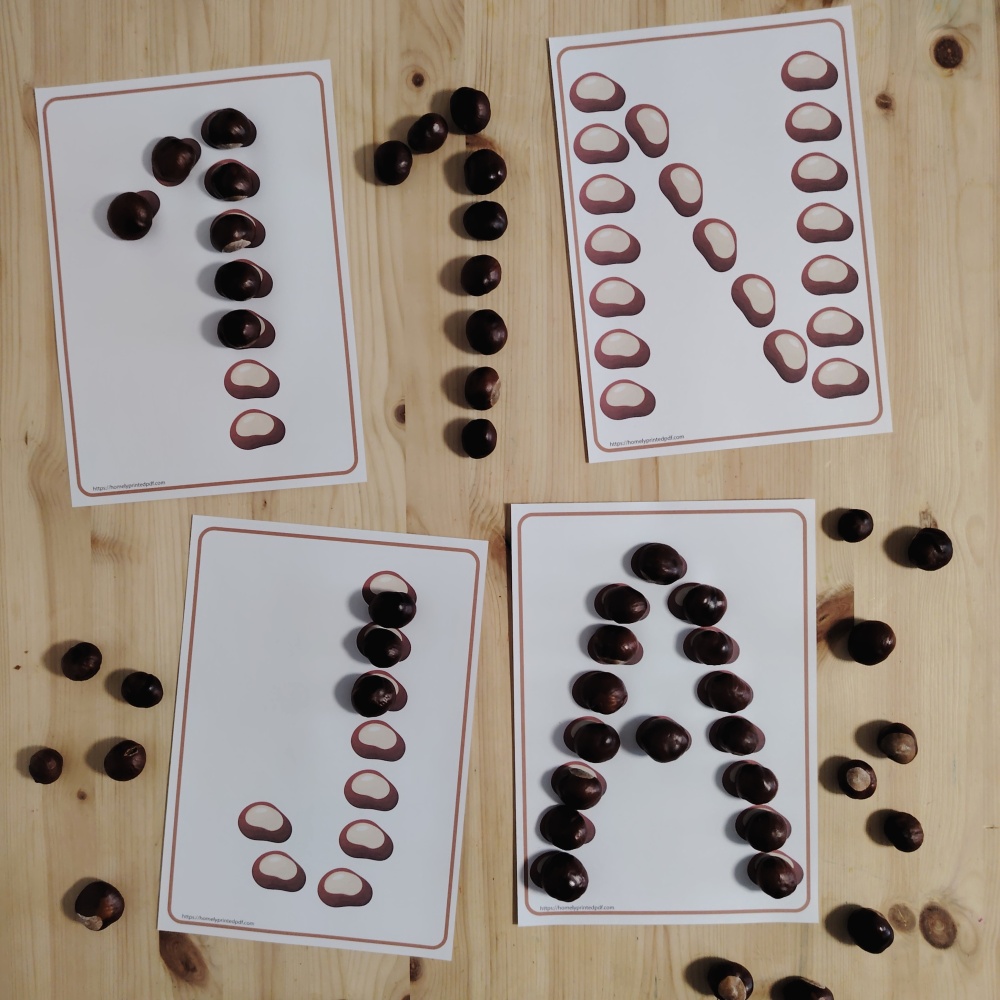 Kasztanowe wrzory - alfabet oraz cyfry 0-9