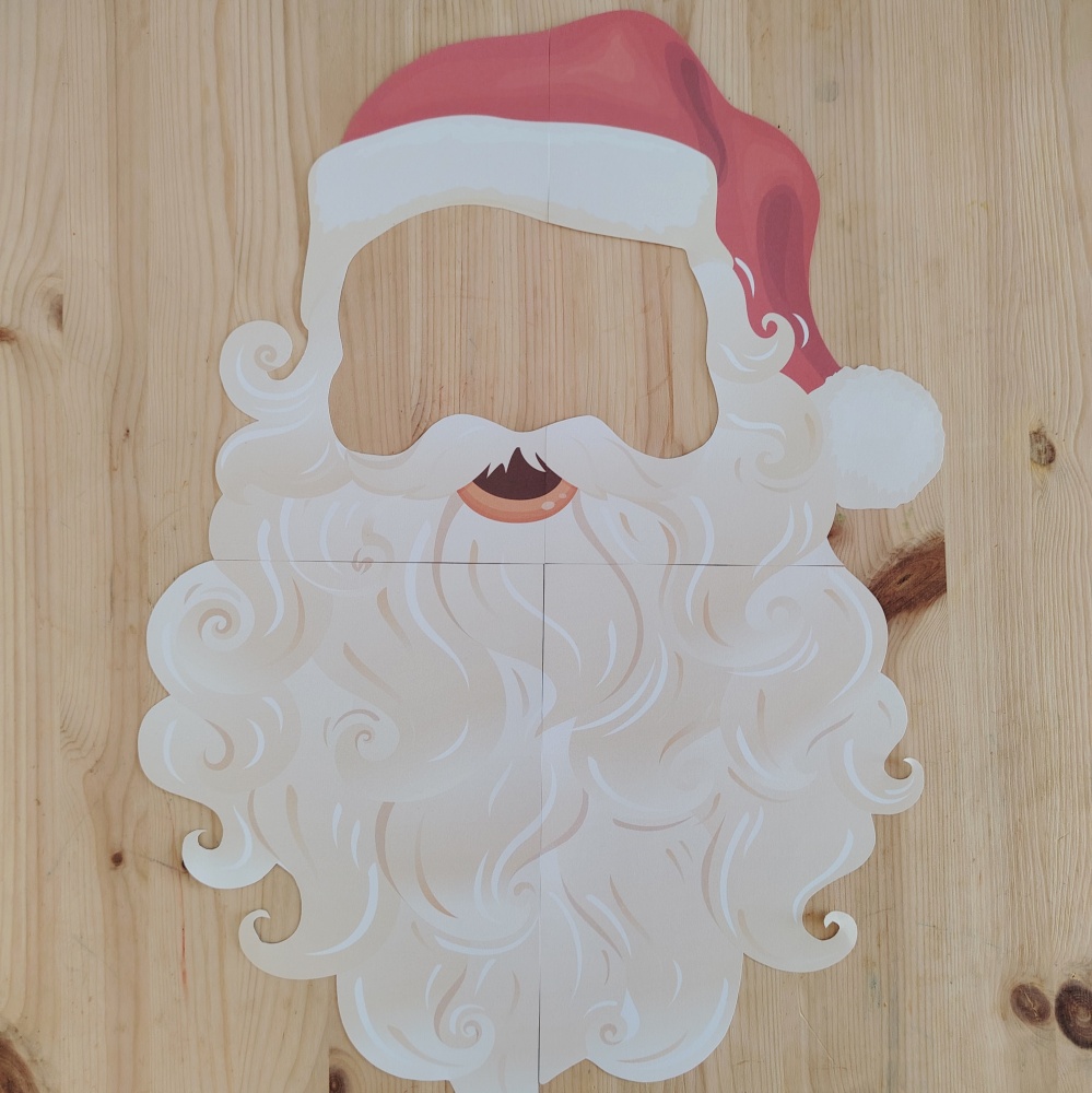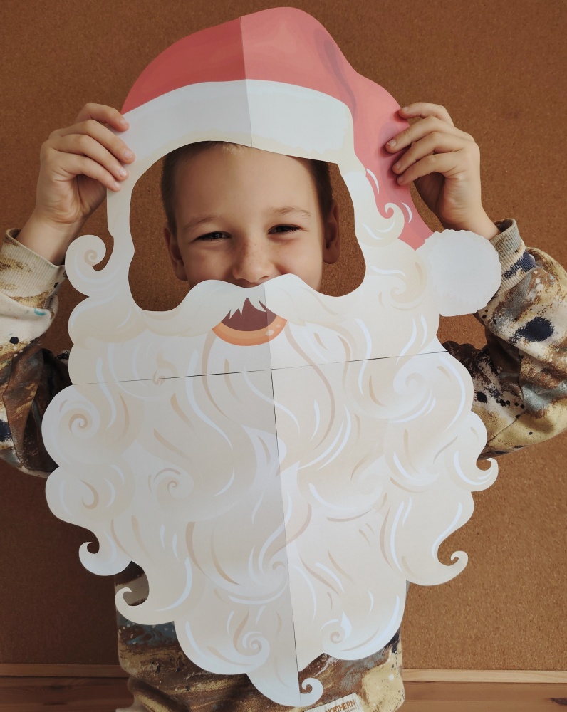 Plik pdf zawiera maske Mikołaja zlozona z 4 arkusz A4 do wyciecia i sklejenia