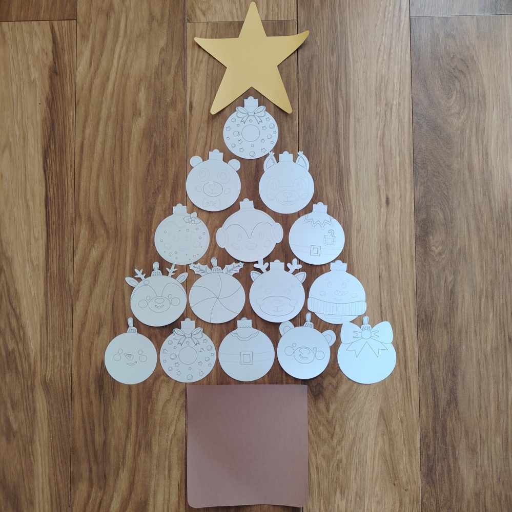 Plik pdf zawiera 14 bombek, pien oraz gwiazde.