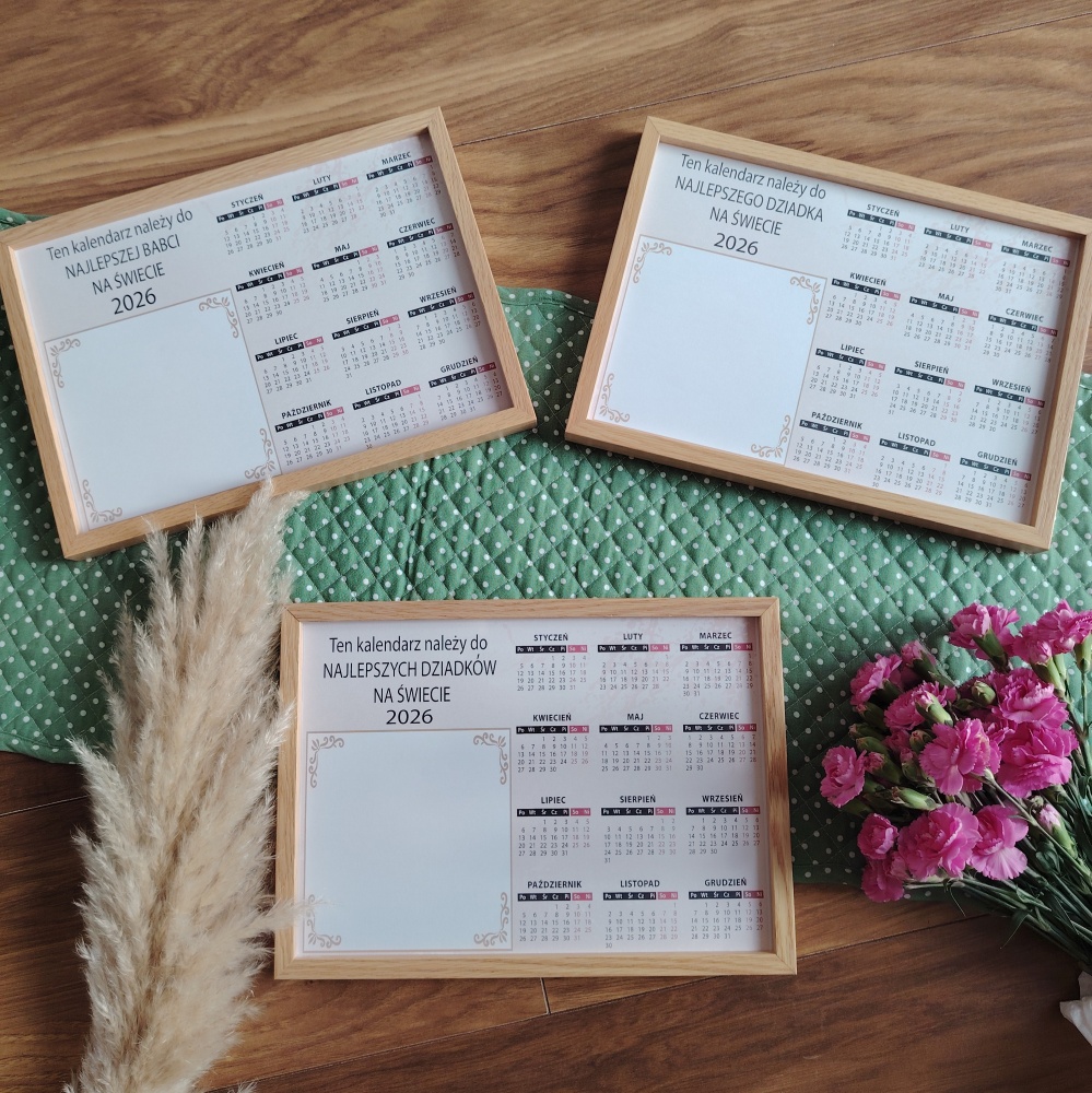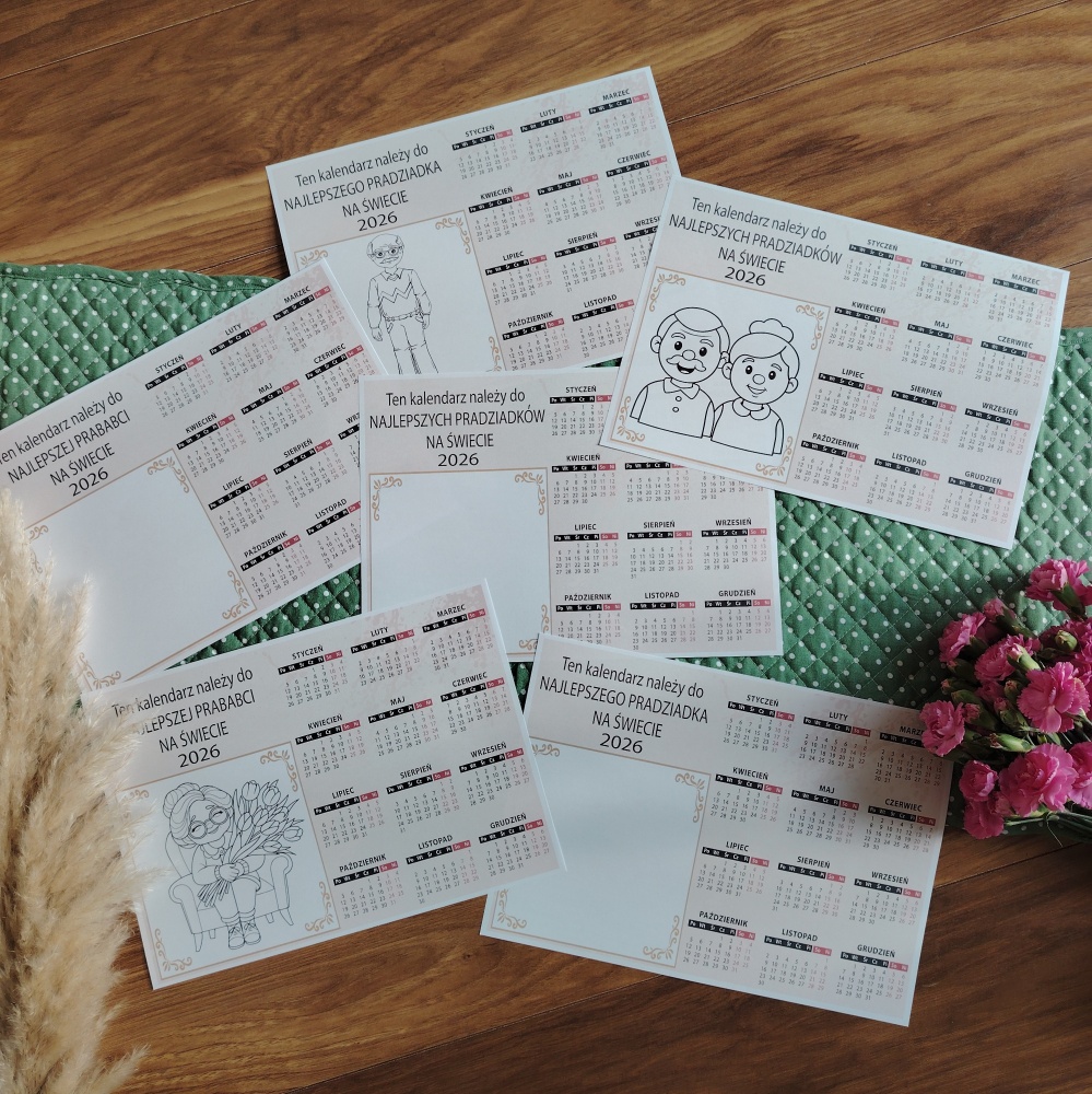 Pakiet kalendarzy dla dziadków i pradziadków z czarnymi napisami 2026