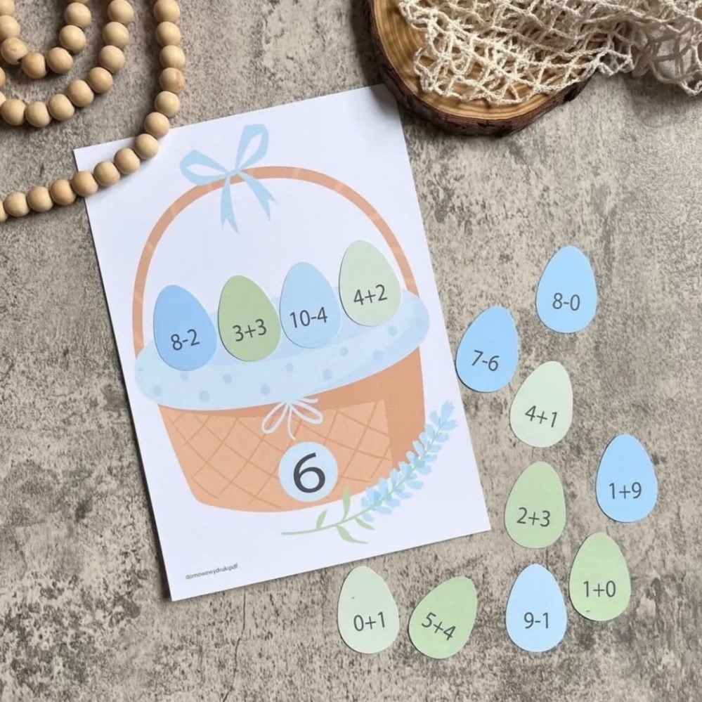 Wielkanocne koszyczki - dodawanie i odejmowanie do 10