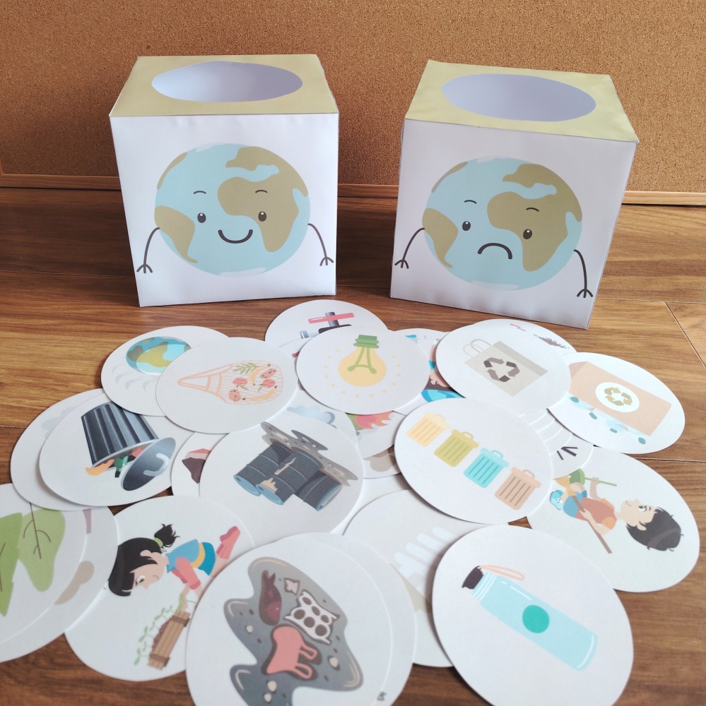 Plik pdf zawiera 2 kostki do sklejenia oray 50 plakietek do segregacji