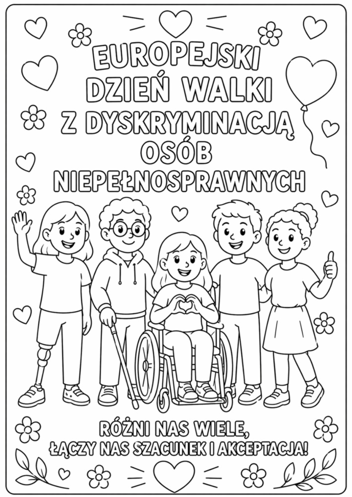 Europejski Dzień Wa lki z Dyskryminacją Osób Niepełnosprawnych kolorowanka A4