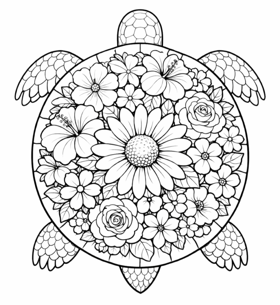 Kwiatowy żółw kolorowanka A4ó